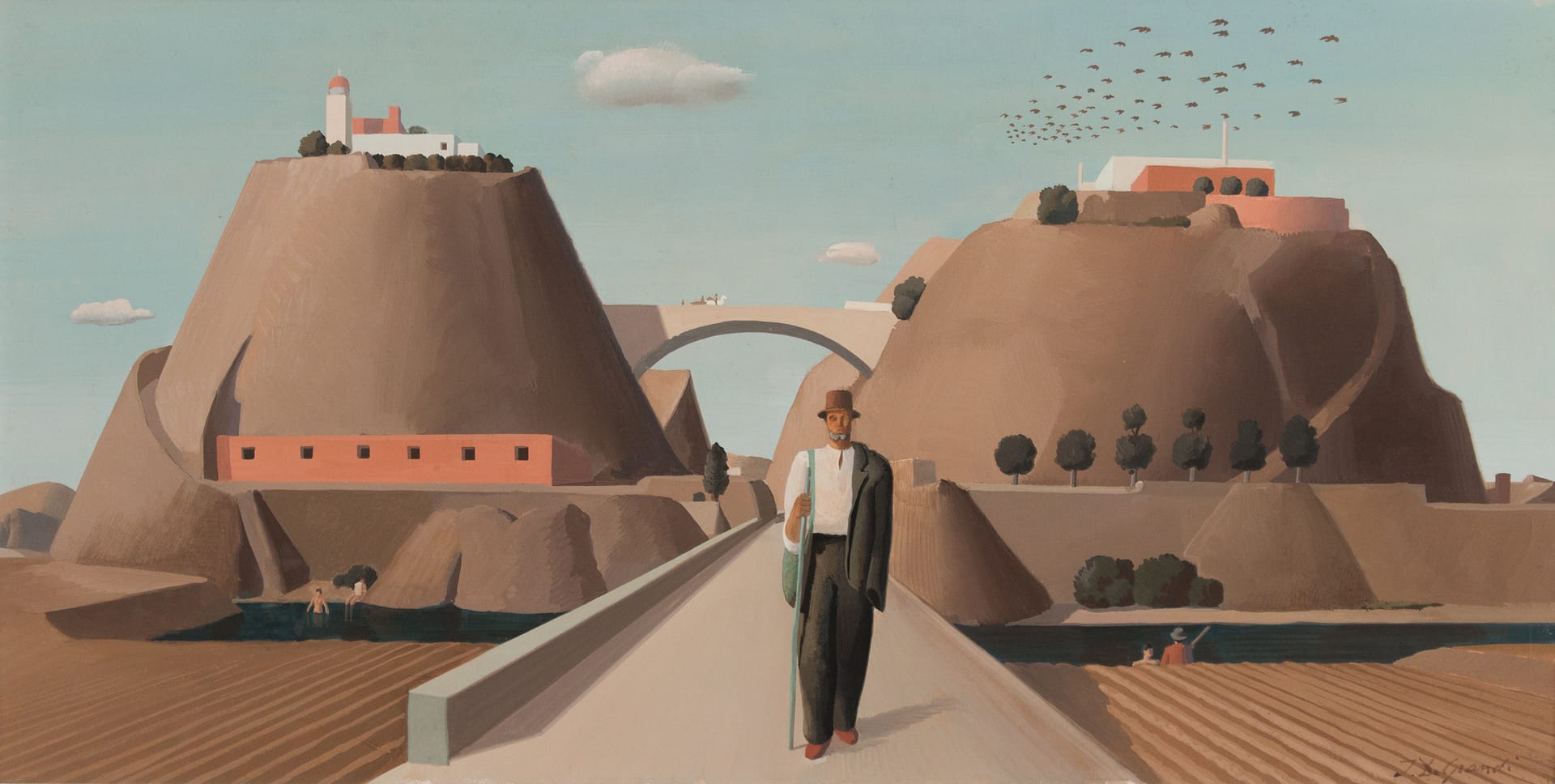 Giorgio De Chirico pour son immobilisme et son bain de lumière intemporelle.