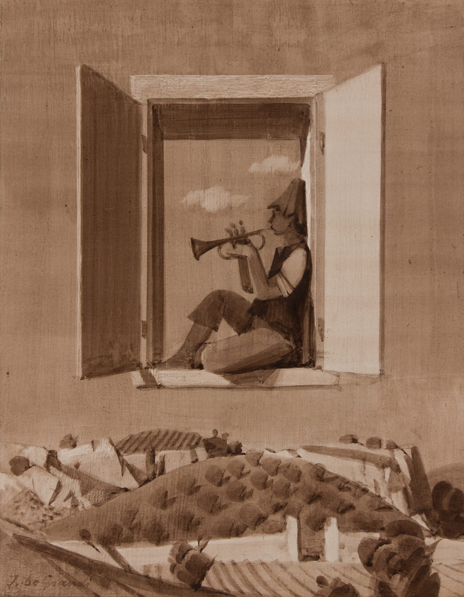 Dans le creuset de sa quête au sein du réel, Italo renoue avec l’imaginaire de sa jeunesse en utilisant le lavis souvent de grand format : autant de scènes dont il s’amuse avec tendresse et nostalgie.