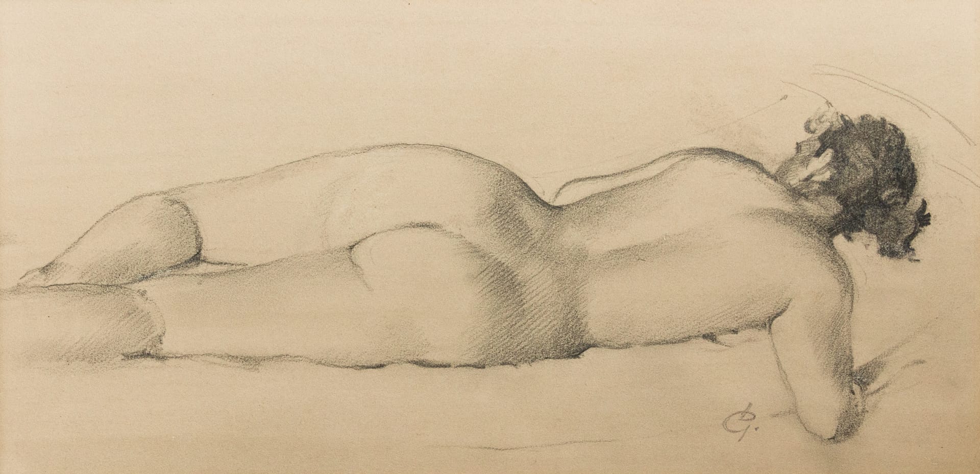 Pour ce nu Italo choisit le crayon qui lui permet de rendre l’harmonie du corps féminin en combinant un tracé minimal avec de délicates hachures soulignant ses volumes.