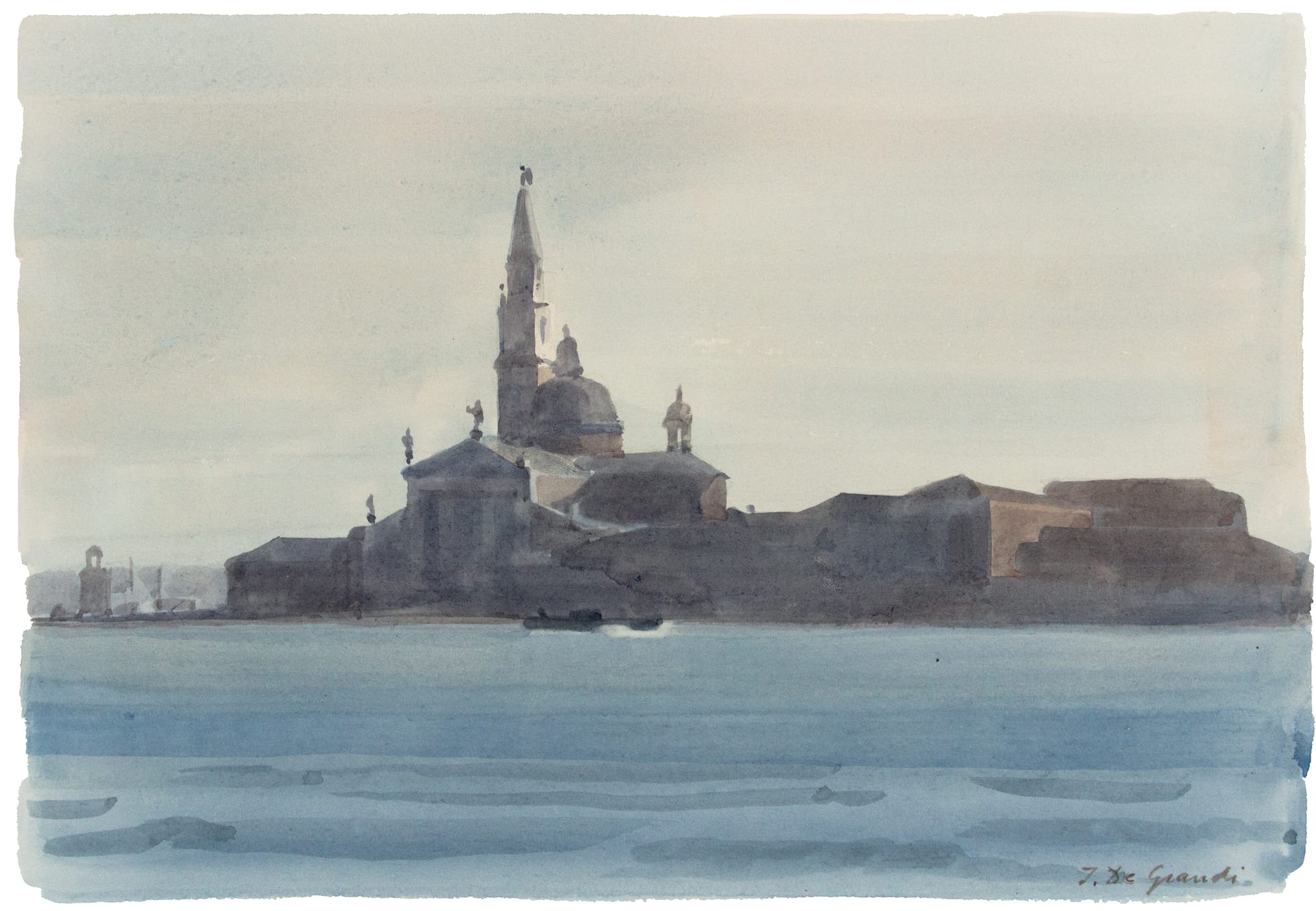 Dès 1978, Italo séjourne chaque hiver à Venise, attiré par les infinies variations des rapports de la pierre, de l’eau et du ciel, par les caprices muets des brumes ou la transparence musicale de l’air. Il en ramène des brassées d’aquarelles sereines ou tragiques, somptueuses et délicates, énigmatiques ou gaiement ravies à l’instant fugace et dans lesquelles la menace de l’impermanence de la ville rongée par l’érosion glisse hors du temps.